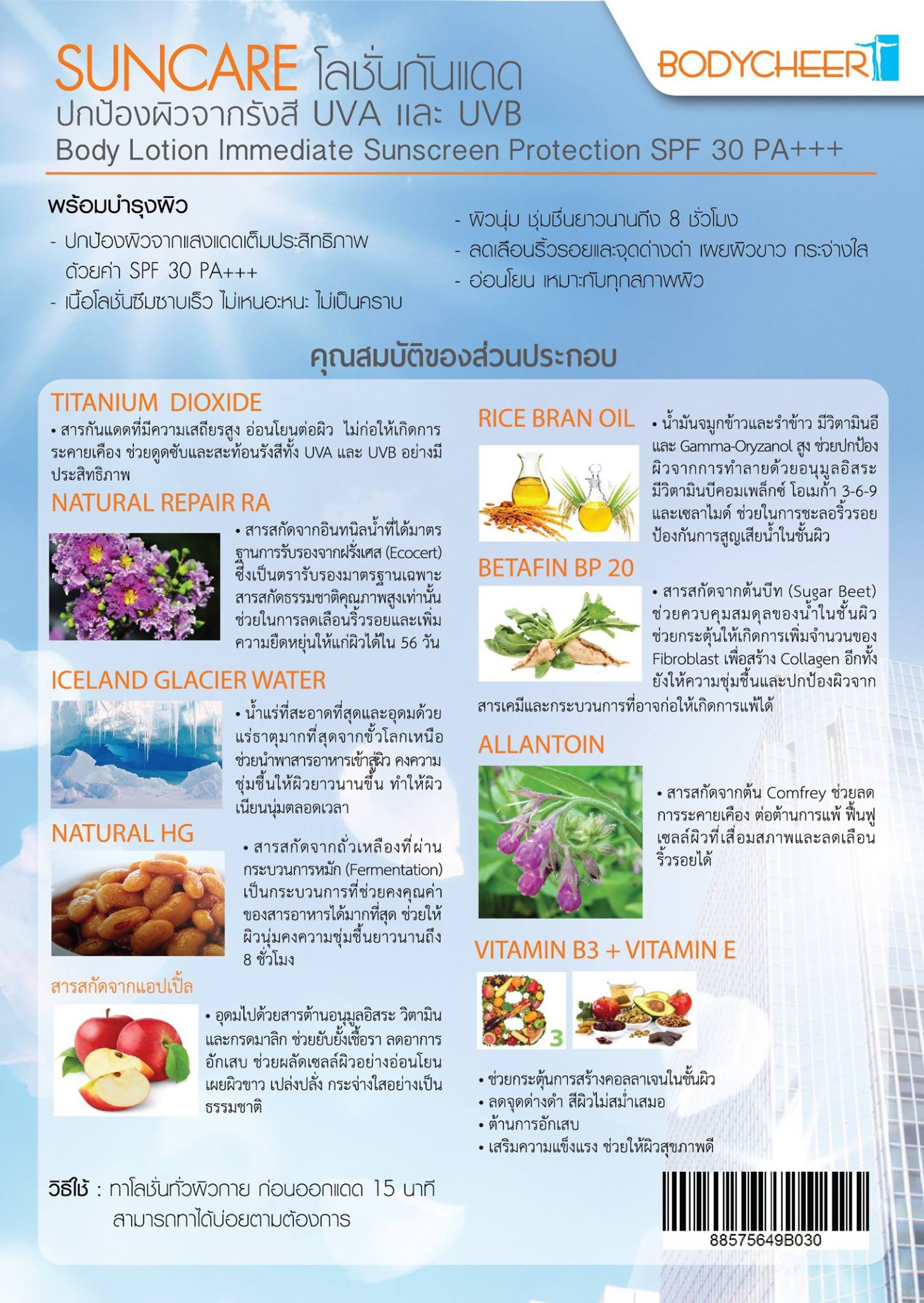 Body Lotion Immediate Sunscreen Protection SPF 30 PA+++ ບໍ່ຫນຽວເຫນອະຫນະ ເຜີຍຜິວຂາວກະຈ່າງໃສ ໃຊ້ໄດ້ທຸກວັນ